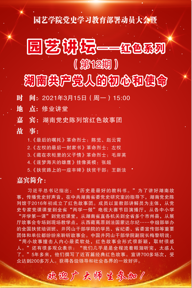 园艺讲坛--红色系列(第12期) 湖南共产党人的初心和使命