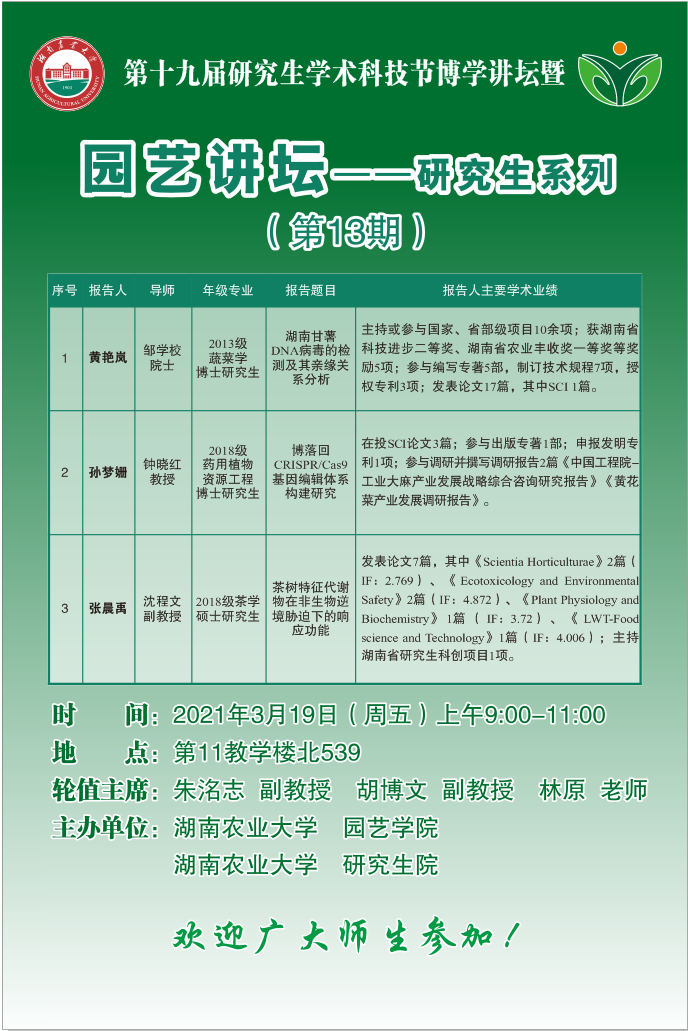 园艺讲坛--研究生系列(第13期)