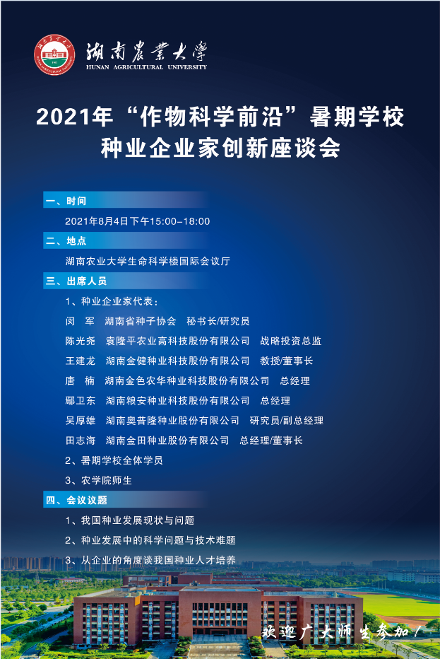 2021年湖南农业大学“作物科学前沿”暑假学校活动日程
