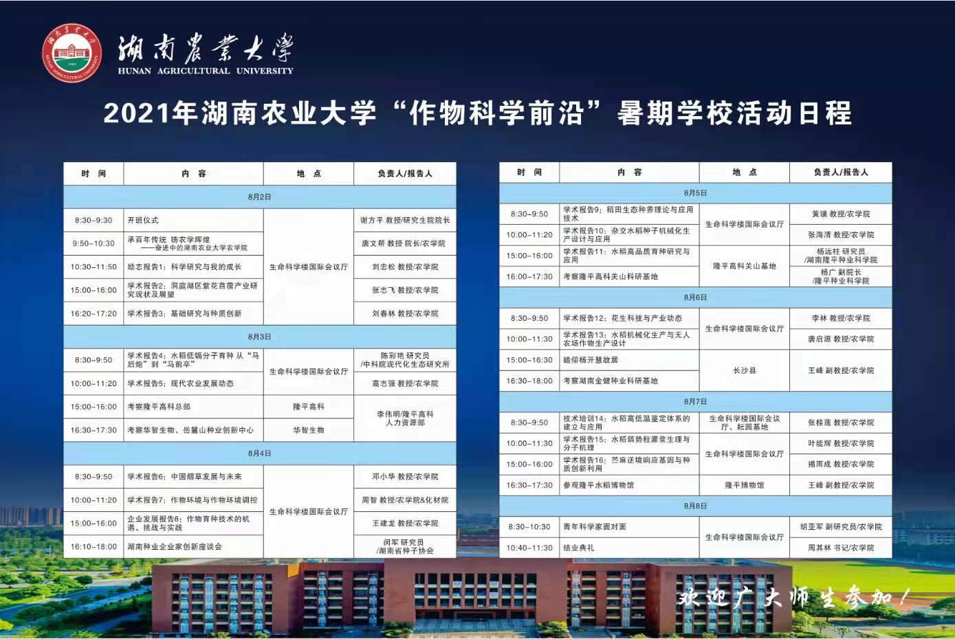 2021年湖南农业大学“作物科学前沿”暑假学校活动日程