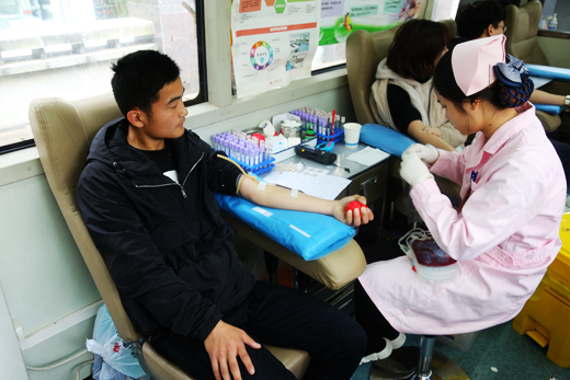 一位刚抽完血还用止血棉捂着伤口的同学说:“这是一位公民、一个当代大学生应尽的责任,献血没什么可怕的,我已经是第三次了,希望更多的老师和同学加入到我们的队伍。”