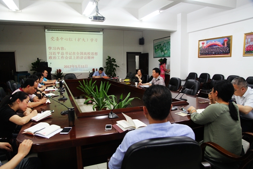 本网讯(党政办 张登高)为深入学习贯彻全国高校思想政治工作会议精神,5月11日下午,学院党委在9教南209会议室召开中心组学习扩大会议,专题学习习近平总书记在全国高校思想政治工作会议上的重要讲话精神。会议由学院党委书记周其林主持,全体党委委员、各党总支书记、直属党支部书记参加了学习。