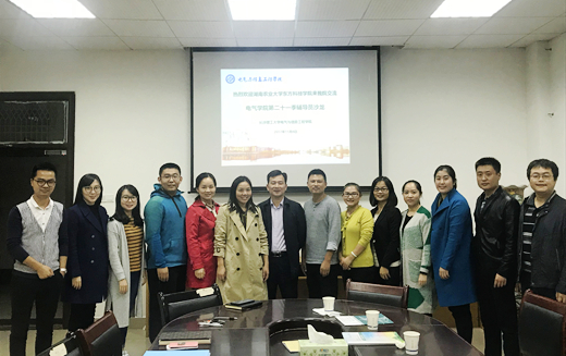 长沙理工大学电气与信息工程学院党委书记符慧林、党委副书记丁丹对邵华副书记一行表示了热烈的欢迎,丁丹副书记携全体学工队伍介绍了学院的典型工作做法。作为专业优势突出的电气与信息工程学院,在学生工作方面有着极富特色的做法和非常先进的经验,尤其是在打造全员育人共同体方面,通过过程育人、科创育人、文化育人和实践育人,构筑了一套培育学生成长成才的工作体系。双方还就学风建设、成长辅导室建设、班级建设和学生党建等方面展开了深入的交流和探讨。
