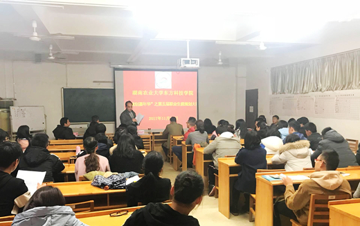 本网讯(招就创中心 唐颖)为了帮助学生尽早树立职业生涯规划意识,引导广大学生以科学的态度和方法规划自己的职业生涯,变“被动就业”为“主动择业”,学院招生就业与创业指导中心于2017年11月30日下午在第九教学楼南105举行了 “就创嘉年华”之第五届职业生涯规划大赛,副院长刘湘辉、公共课部主任付在汉、招生就业与创业指导中心主任黄正军及刘文利老师、邓胜老师担任评委,各学部副主任、就业专干到场观看比赛。