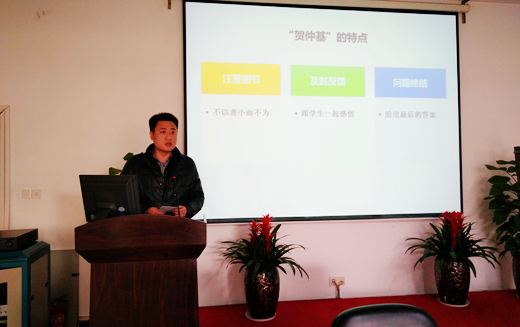不同于以往的辅导员沙龙,本期沙龙始终贯穿在欢声笑语、感人至深的氛围中。经管学部贺际强老师讲述了自己被学生称为“贺仲基”的由来、“贺仲基”的特点,并分享了辅导员个人魅力养成的个人经验;理工学部周涌老师用诙谐幽默却又中肯的话语描述了理工学部每一位辅导员老师的个人魅力,笑声中被深深感动;人文学部梅向晖老师以朗诵的方式讲述了几个直击她心灵的辅导员的故事,看到了辅导员的个人魅力在同事间的传递;生科学部陈芬老师带领学部全体辅导员以原创的“三句半”曲艺表演方式展示了学工系统辅导员的个人魅力,气氛非常活跃。