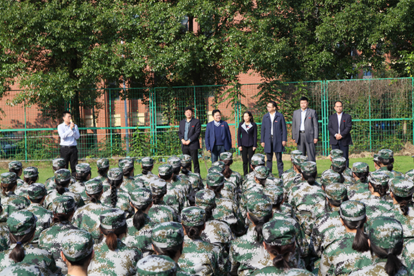 见面会后,学院党委副书记朱杰辉陪同全体院领导到各方阵进行了检查和指导,慰问教官和新生同学们。