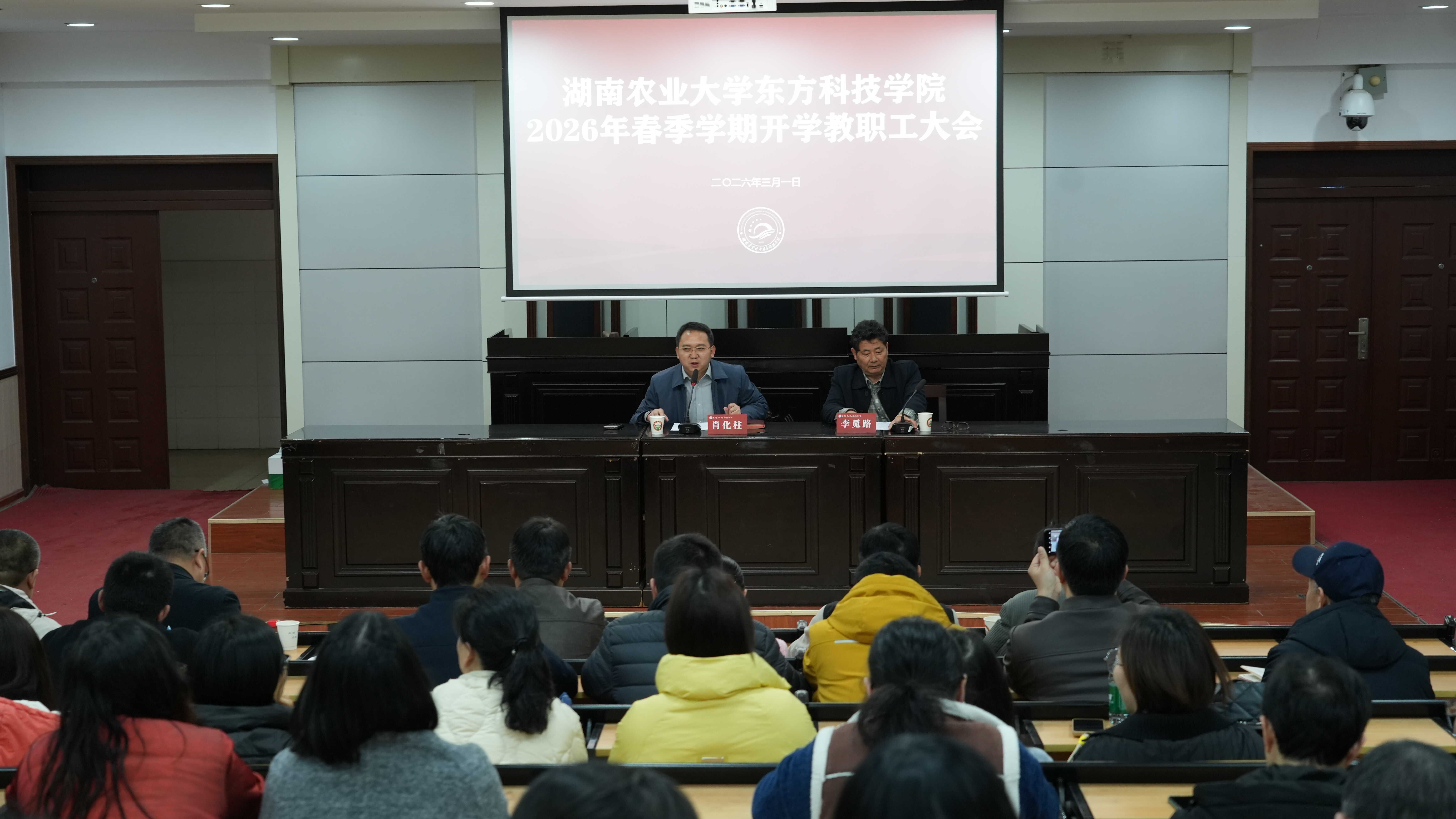 3月1日上午,学院召开2026年春季学期开学教职工大会。全体学院领导出席,全体教职工参加会议。会议由学院党委书记肖化柱主持。