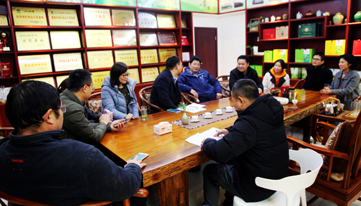 云游茶业党支部书记、总经理杨应辉等企业负责人与学院一行召开交流会。杨应辉介绍,云游茶业有限公司是一家老字号的农业龙头企业,拥有茶园面积3000亩,其中良种茶园2000亩,有机茶园500亩,是一家集茶叶种植、加工、销售于一体的综合茶企业,是湖南农业大学推广良种茶种植示范基地、长沙市现代农业特色产业科技示范基地、湖南望城区国家农业科技园区示范基地。云游茶业围绕“党建引领新发展、产业提升新市场、科技支撑新品质、文化推动新理念”思路,投入数百万元,为党员们打造了一个集茶文化、党建文化于一体的党支部阵地,成为农村党组织探索村企党建阵地共建共享的一张新名片。学院党委书记史云峰表示,云游茶业充分发挥党建引领作用,利用自身优势,发展农业,致富茶农,用现代农业带动城乡一体化建设,在望城区靖港镇乡村振兴、村企党建方面起到很好的示范作用,希望今后学院和云游茶业双方能加强校企合作。在杨应辉的陪同下,学院一行参观了云游茶业种植基地、云游茶业党支部党建长廊。