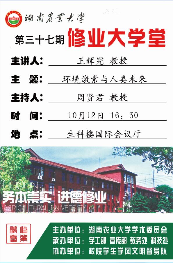 修业大学堂第三十七期--王辉宪教授| 环境激素与人类未来