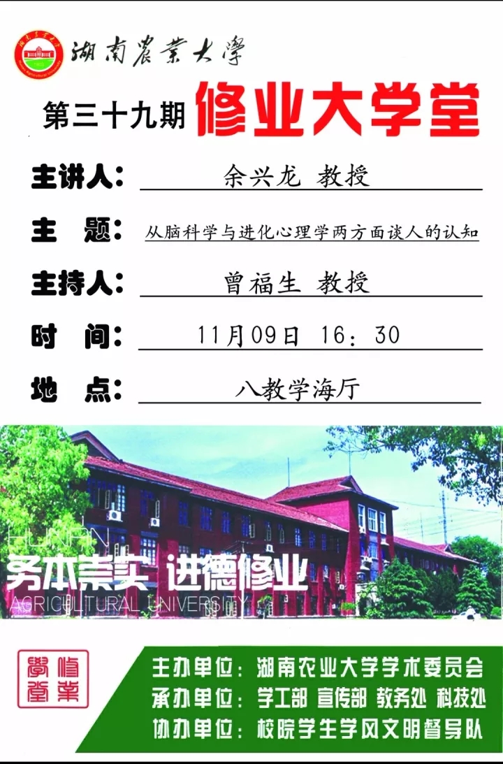 修业大学堂第三十九期--余兴龙教授| 从脑科学与进化心理学两方面谈人的认知