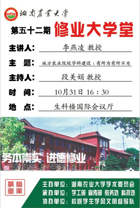 修业大学堂第五十二期——李燕凌教授主讲《地方农业院校学科建设:有所为有所不为》