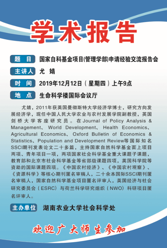国家自科基金项目(管理学部)申请经验交流报告会