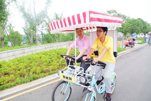 午饭后,最受残友们喜爱的骑自行车游览浏阳河风光带活动开始了。在志愿者们一对一的陪伴下,残友们急不可耐地登上了自行车。患有眼盲的蔡燕玲高兴地说:“虽然我看不见,但是能够骑在自行车上,感受一下这种微风拂面的凉爽,这才是我的梦想呀!”