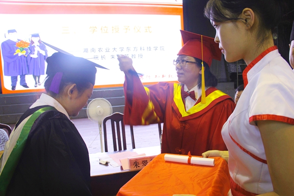 朱翠英院长为毕业生颁发学士学位证书
