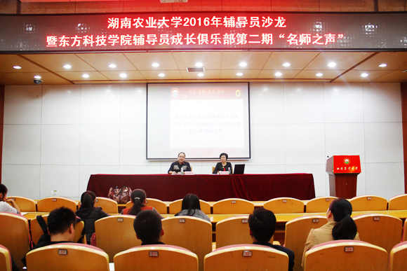本网讯(学工部 言勇)10月14日下午,学院学工部联合母体学校在学海厅举办了辅导员成长俱乐部第二期“名师之声”活动,活动邀请的嘉宾为广东技术师范学院辅导员、全国辅导员年度人物、广东省“劳动模范”陈小花老师。学院党委副书记张胜利老师主持活动,学院全体辅导员老师以及母体学校部分辅导员参加活动。