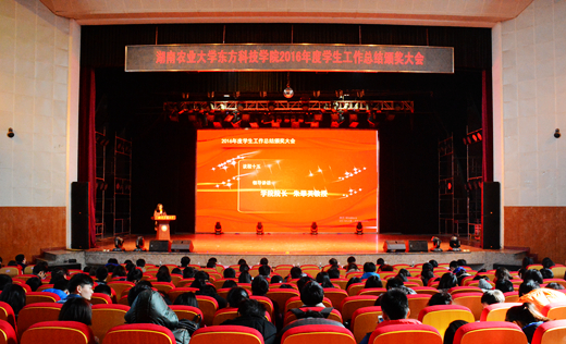 本网讯(院学生会 王雅晴)12月30日上午,学院在大礼堂举行2016年度学生工作总结颁奖大会。院领导朱翠英、周其林、汪建训、史云峰、张胜利、邵华、肖化柱出席会议。