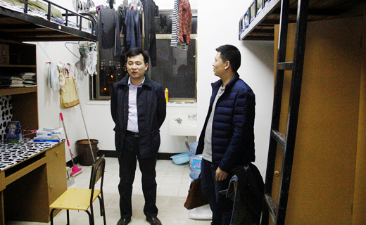 晚上7:30,邵华副书记组织全院辅导员和班主任深入寝室看望学生,给学生们送去新学期的问候,并就学生的到校情况、安全用电、内务卫生、禁养宠物、第一堂课等方面与同学们进行充分的沟通。