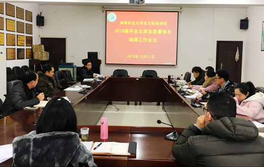 本网讯(招就创中心 彭晓)为进一步做好就业质量报告编撰工作,2018年12月11日上午10点,学院2018届毕业生就业质量报告编撰工作会议在九教南209会议室召开,学院副院长刘湘辉老师、招生就业创业指导中心和培训与对外交流合作中心全体老师、各学部学工副主任以及就业专干参加了会议