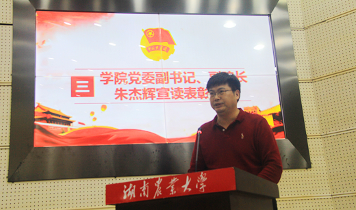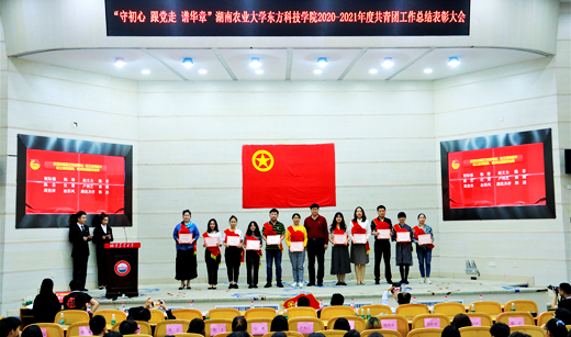 学院党委副书记朱杰辉宣读《湖南农业大学东方科技学院关于表彰2020~2021学年度共青团工作先进集体和优秀个人的决定》,并鼓励受表彰的集体和个人发挥先锋模范作用,再接再厉,再创佳绩,激励各级团组织和广大团员青年以他们为榜样,勤奋学习,努力工作,为自身成长成才和学校学院发展持续奋斗。