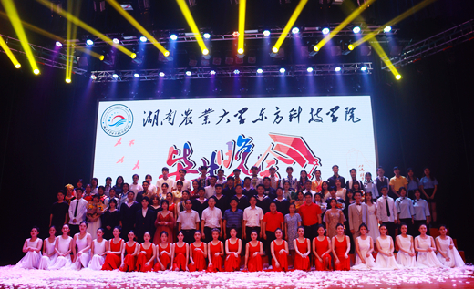 在舞蹈节目《不说再见》的美好祝愿中,晚会圆满落幕。领导、老师、演员、工作人员和观众们纷纷上台,话别友谊,合影留念。