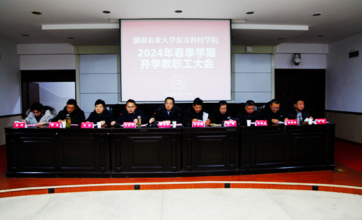本网讯(党政办 严春花)2月25日,学院召开2024年春季学期开学教职工大会,就新学期工作作出部署。湖南农业大学党委副书记、东方科技学院院长陈光辉,学院常务副院长李觅路,党委书记肖化柱等全体院领导出席。会议由肖化柱主持。