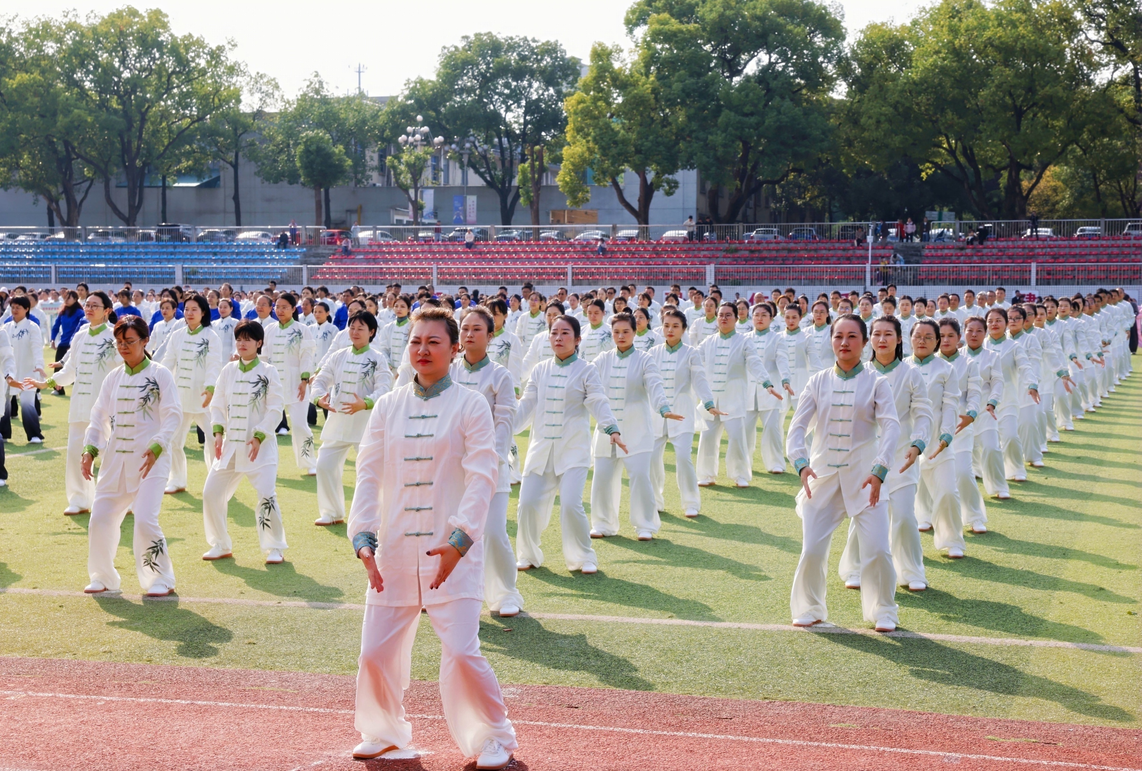 学院高度重视此次比赛,各工会小组积极响应、认真选拔,最终选送10名男教职工、32名女教职工组成参赛队伍。为展现最佳状态,队员们利用课余时间进行训练,克服工作繁忙、时间紧张等困难,逐动作拆解、逐细节打磨,力求将八段锦“形、气、神”完美融合,做到动作整齐划一、刚柔并济。比赛采用两轮打分制,队员们以饱满的精神、舒展的动作精准完成每一式招式,彰显扎实功底。